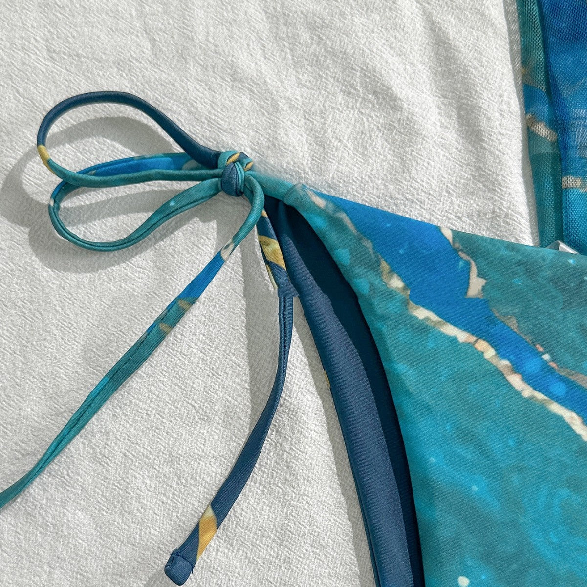 Marble-patterned Mesh Veil Detachable Strap Sexy Bikini Three-piece Set