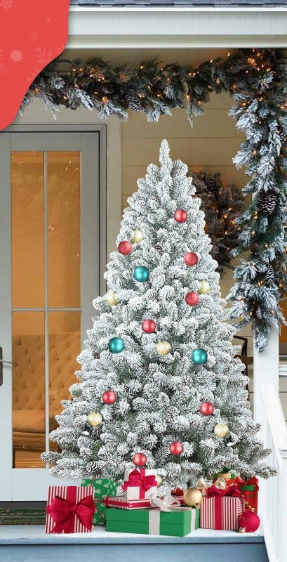 7ft PVC mixed flocked tree with 45 pinecones and 1268 tips